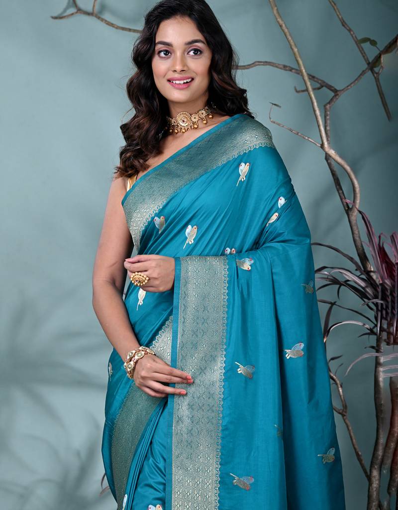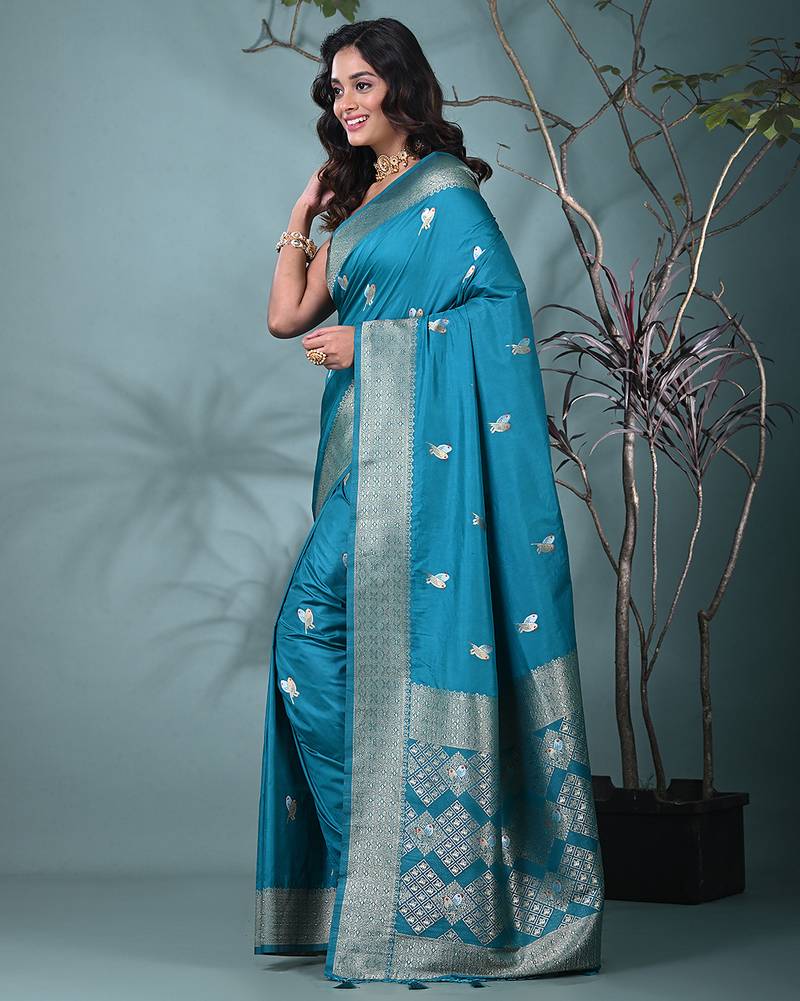 | Product Description | Step Into Elegance With This Stunning Sky Blue Silk Blend Saree, A Perfect Blend Of Tradition And Modernity. The Vibrant Sky Blue Color Exudes Warmth And Charm, Making It An Ideal Choice For Weddings, Festivals, And Special Occasions. The Luxurious Silk Blend Fabric Offers A Soft And Smooth Texture, Ensuring Comfort While Maintaining A Graceful Drape. The Saree Is Adorned With Delicate Floral Motifs And Detailed Zari Work Along The Borders, Elevating Its Beauty And Creating A Sophisticated Look. The Intricate Design On The Pallu And The Border Adds A Touch Of Class, Making It A Perfect Ensemble For Those Who Love To Shine With Traditional Elegance. |