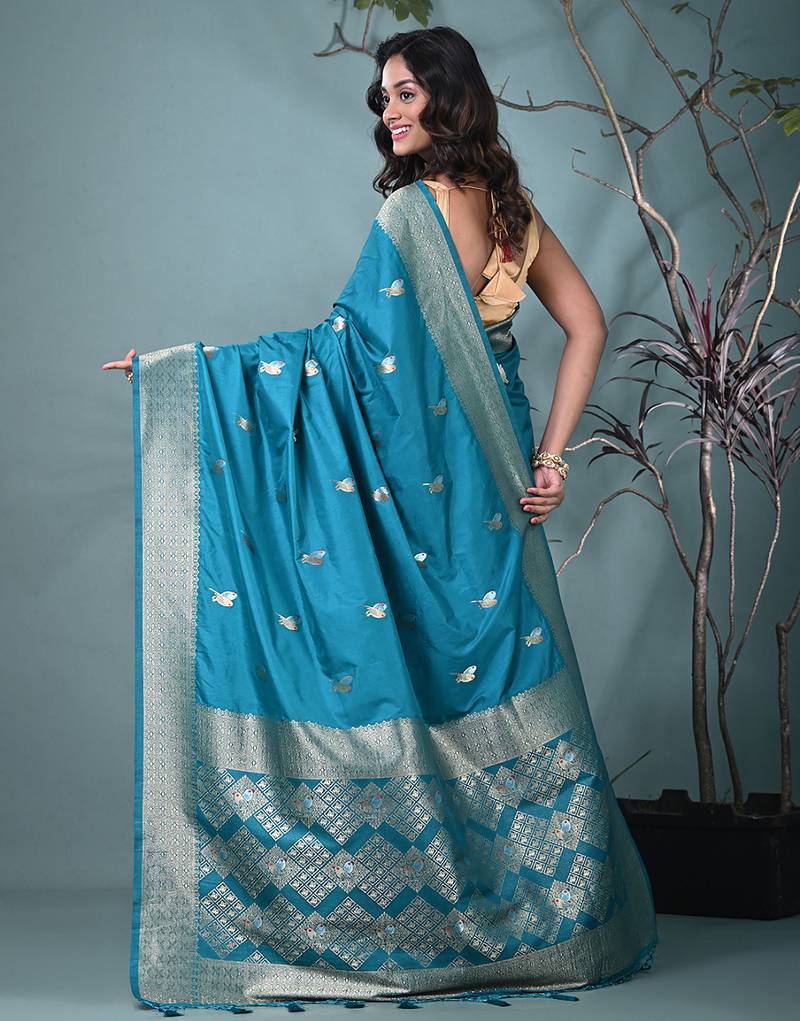 Graceful sky blue silk blend blend saree with intricate zari work