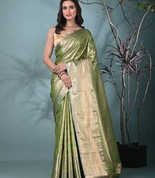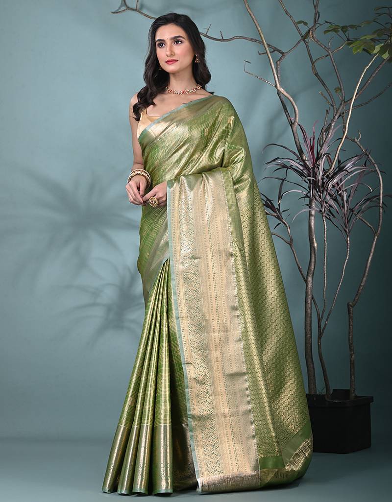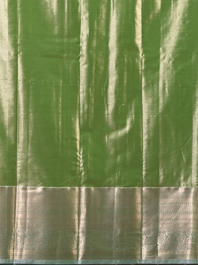 Green tissue silk blend kanjivaram saree with intricate border