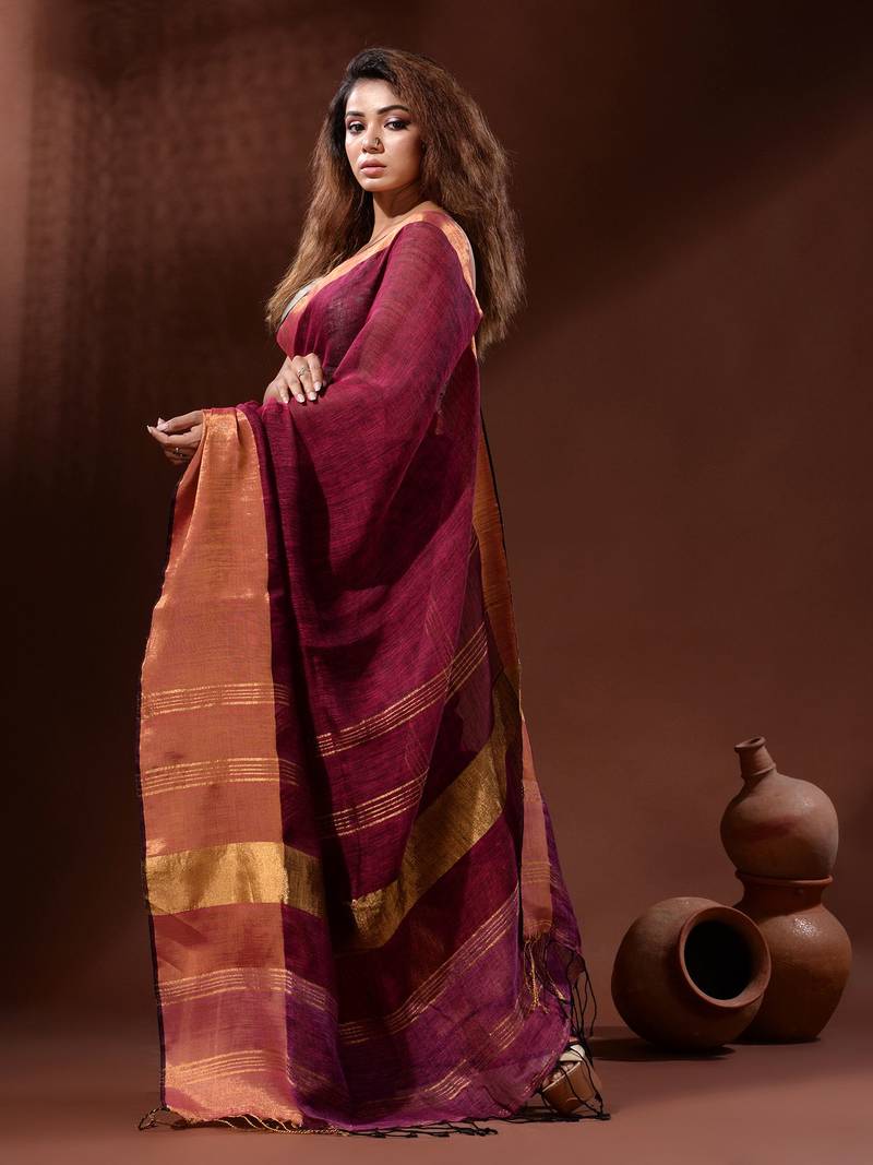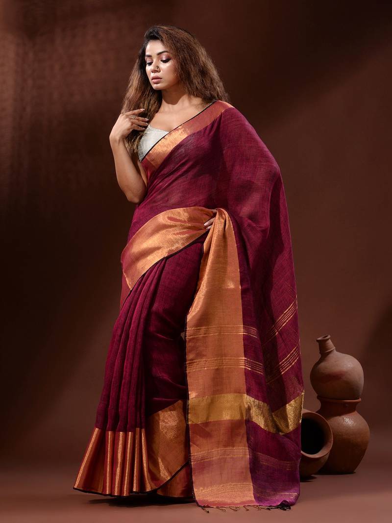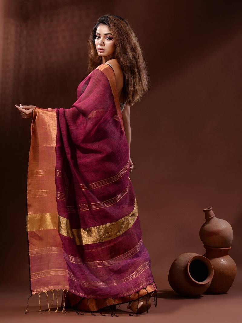 | Product Name | Magenta Linen Handwoven Saree With Zari Borders | |