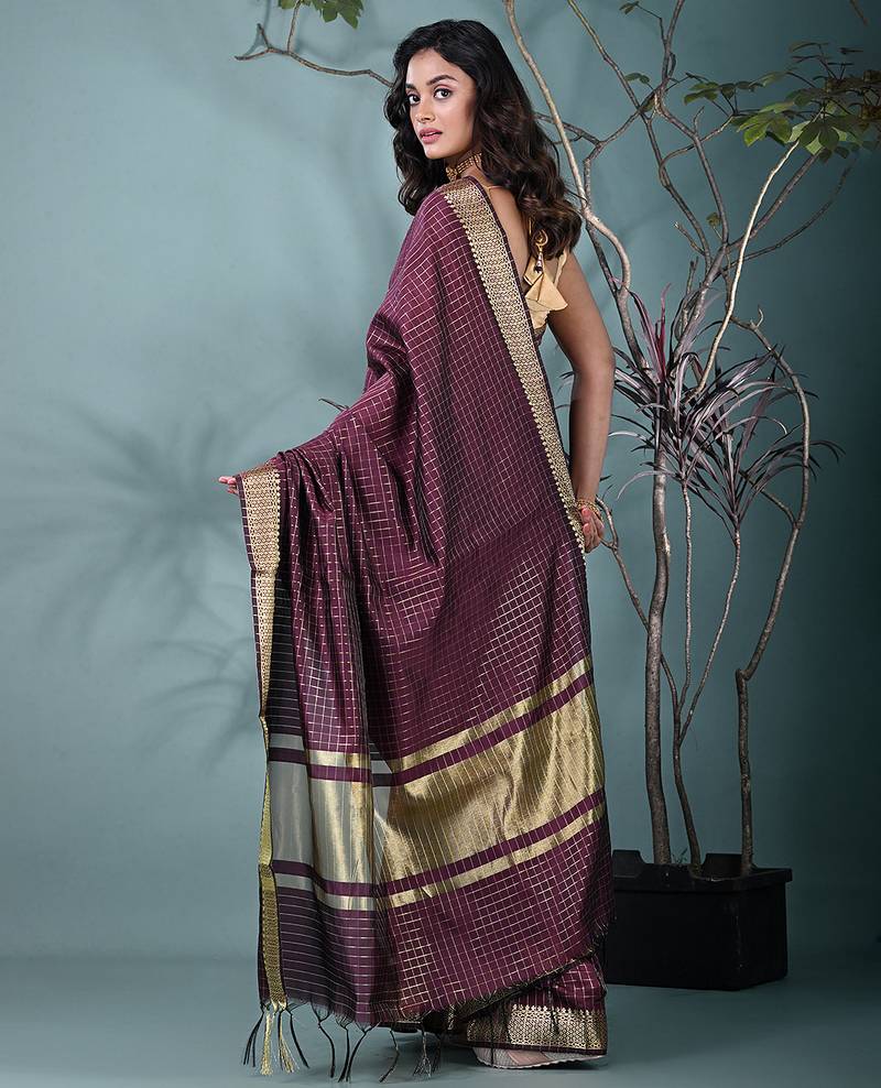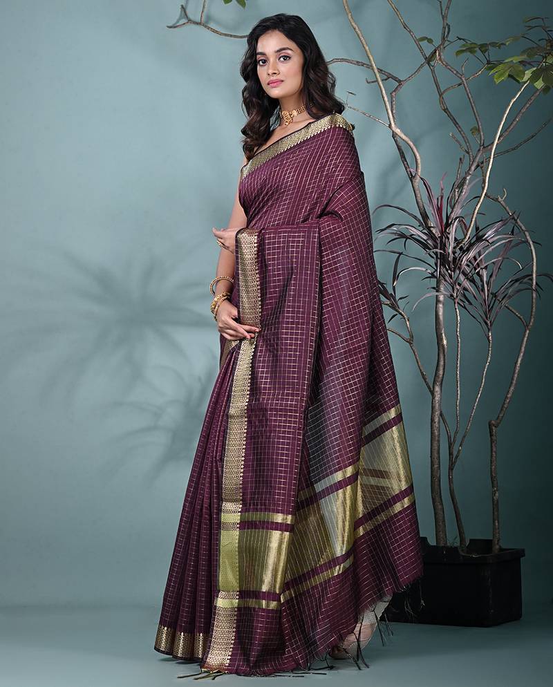 | Product Name | Maroon Catlon Soft Art Silk Saree With Checkered Pattern | |