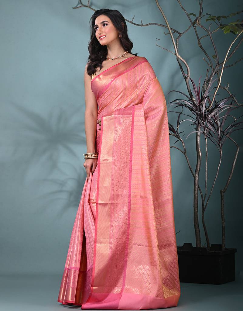 Pink brocade saree with intricate borders