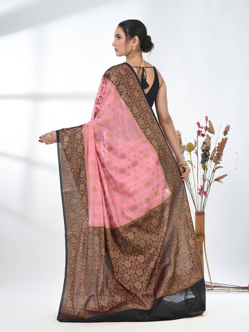 | Product Description | This Stunning Pink Georgette Saree Exudes Elegance With Its Intricate Floral Motifs And Rich Blak And Gold Border. The Luxurious Georgette Fabric Drapes Beautifully, Offering Both Comfort And Style. Ideal For Weddings, Parties, Or Any Festive Occasion, This Saree Blends Tradition With Modern Flair. The Combination Of Bold Black With The Vibrant Red And Gold Makes It A Standout Piece For Any Special Event. Pair It With A Red Blouse And Statement Jewelry For A Complete Look. |