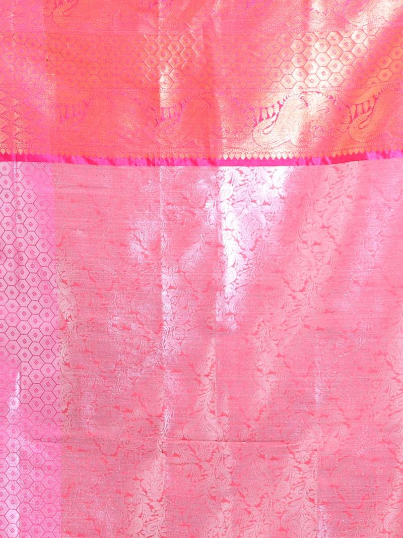 | Product Name | Pink Handwoven Kanjivaram Pattu Saree With Paisley And Ethnic Designs | |