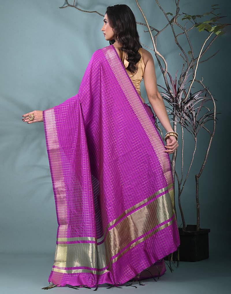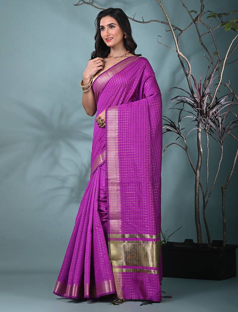 | Product Name | Purple Catlon Soft Art Silk Saree With Checkered Pattern | |