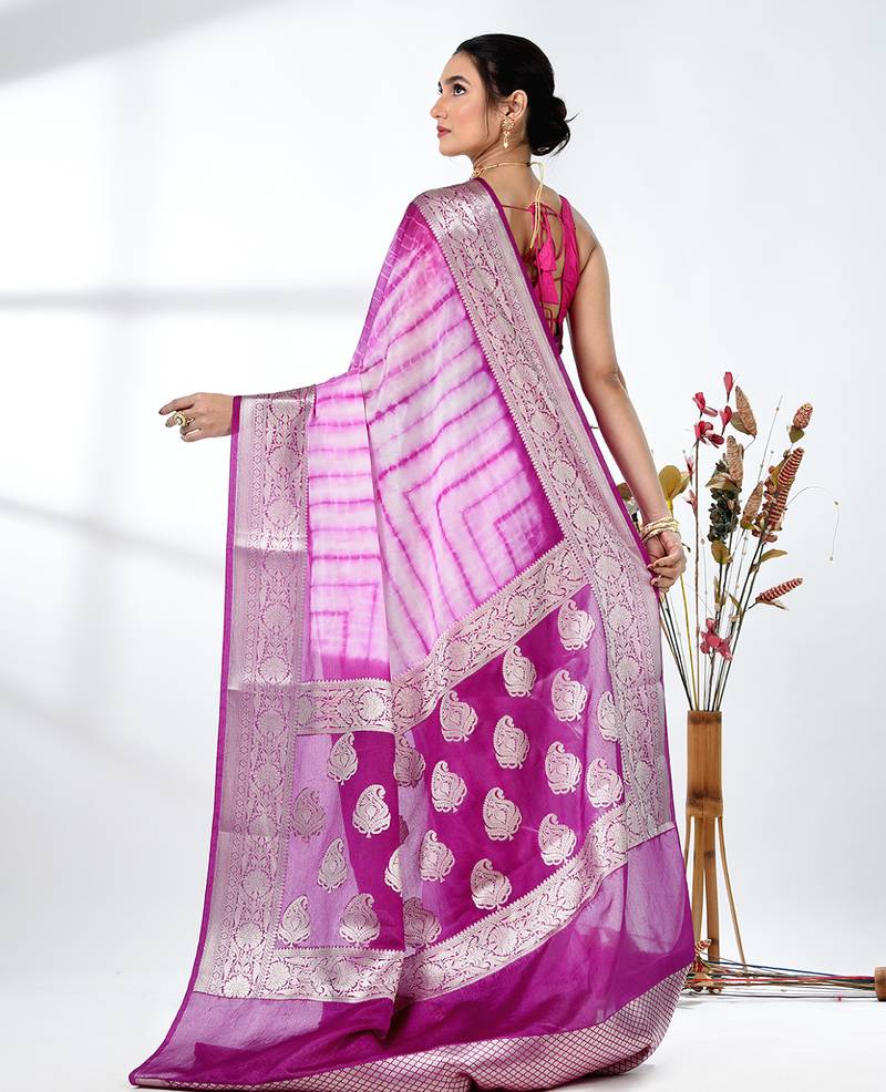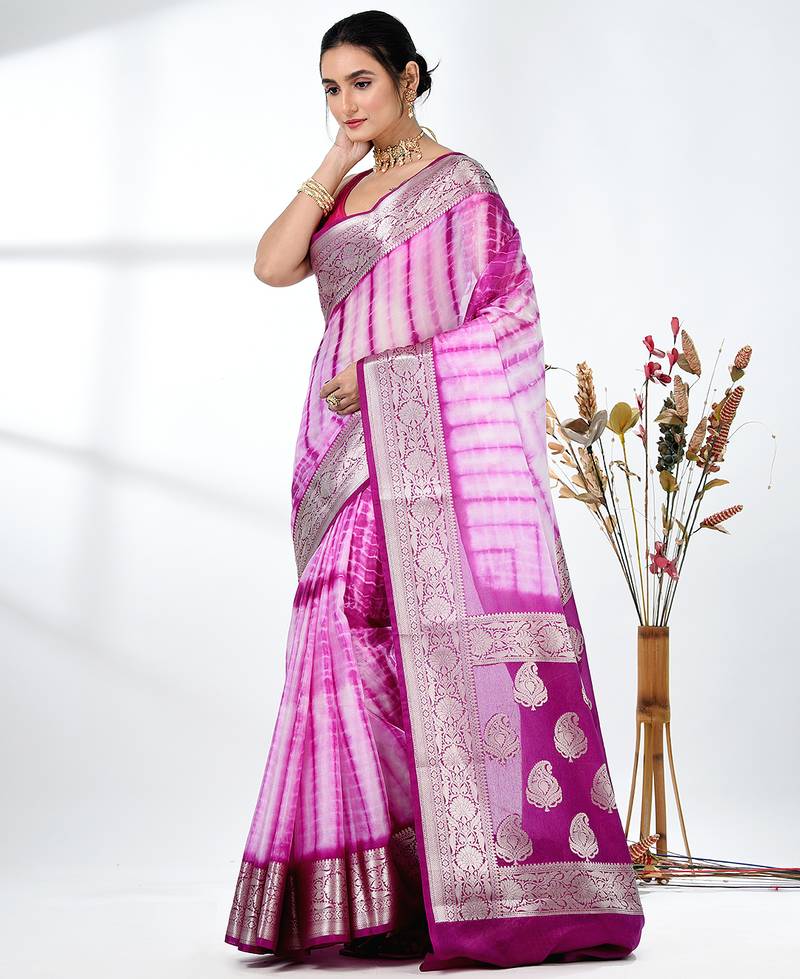 | Product Description | Add A Touch Of Elegance To Your Wardrobe With This Stunning Purple & White Silk Blend Saree. Featuring A Beautiful Tie & Dye Pattern, The Saree Gracefully Transitions From Soft Purple To White, Creating A Mesmerizing And Sophisticated Look. The Rich Silk Blend Fabric Ensures Comfort And A Luxurious Feel, Making It Perfect For Both Festive And Formal Events. The Saree Is Enhanced By An Intricately Designed Border, Adding An Exquisite Traditional Touch. Pair It With Your Favorite Jewelry And Accessories For A Complete Ensemble That Radiates Grace And Beauty. |