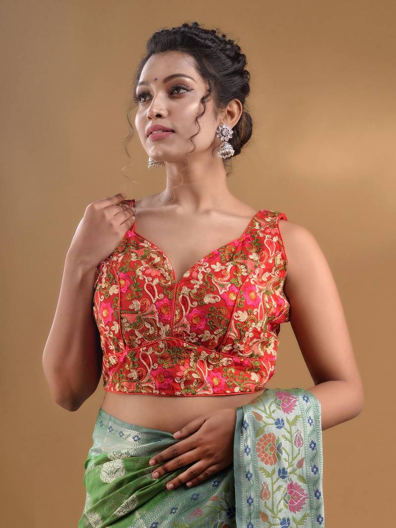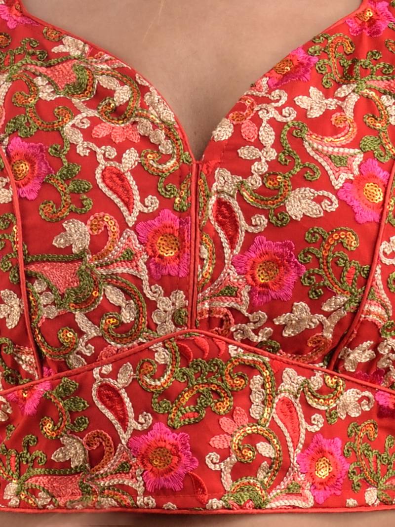 | Product Description | Get A Loving Look In This Red Georgette Sleeveless Blouse. It Has A Sweetheart Neckline With Glass Sleeves And Back Hook Placket. Floral And Paisley Designs Are Embroidered All Over With Multicolour Threads, Detailed With Sequins For A Beautiful Look. |