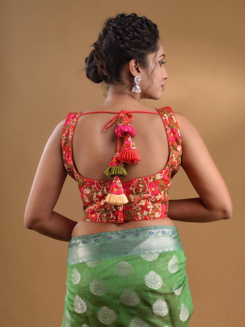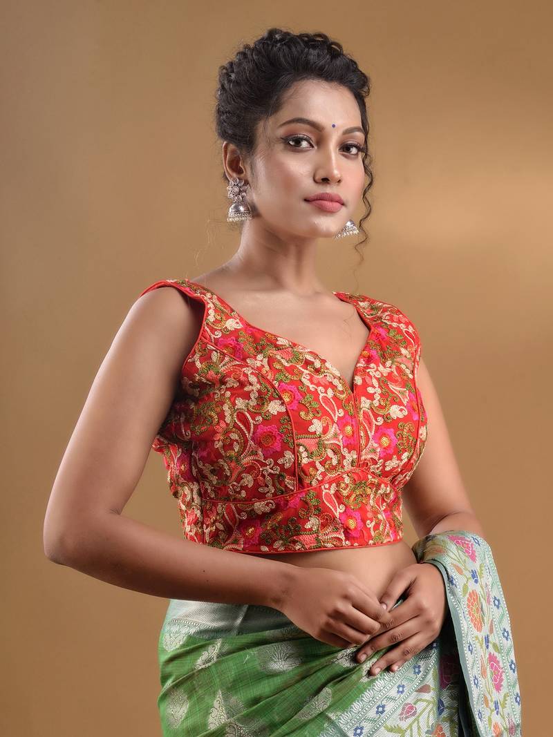 | Product Name | Red Georgette Sleeveless Blouse With Floral Embroidery And Sequins Free Size | |