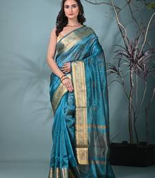 Sapphire blue tissue saree with stone detailing