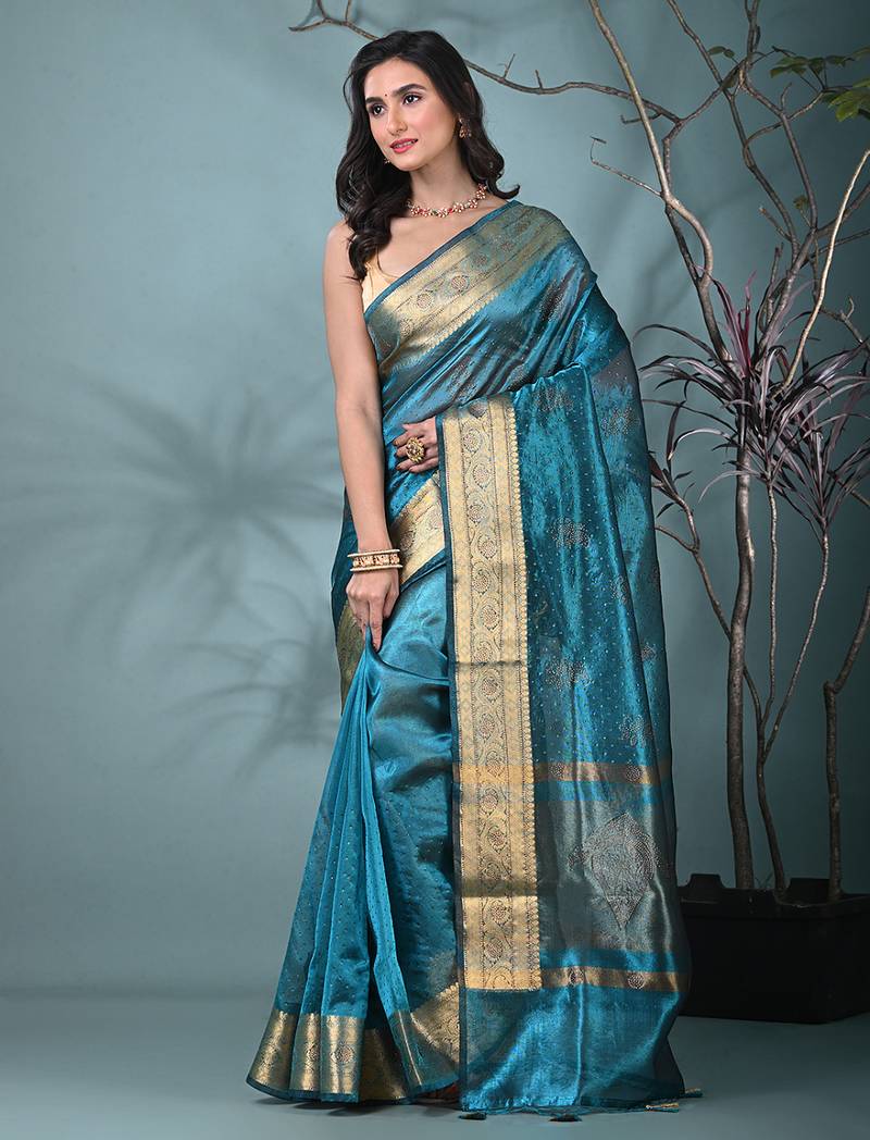 | Product Name | Sapphire Blue Tissue Saree With Stone Detailing | |