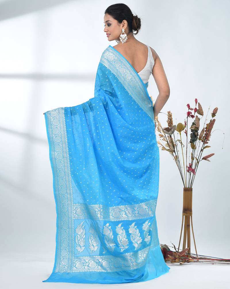 | Product Name | Sky Blue Georgette Saree With Silver Border And Detailing | |