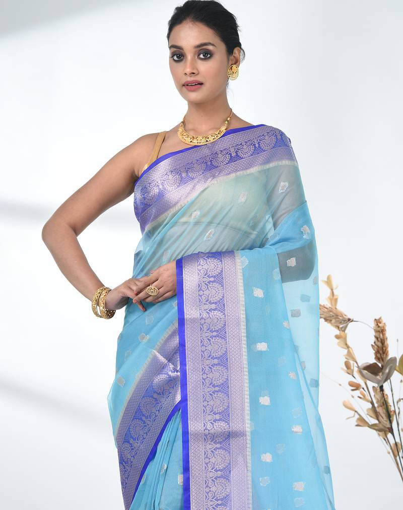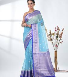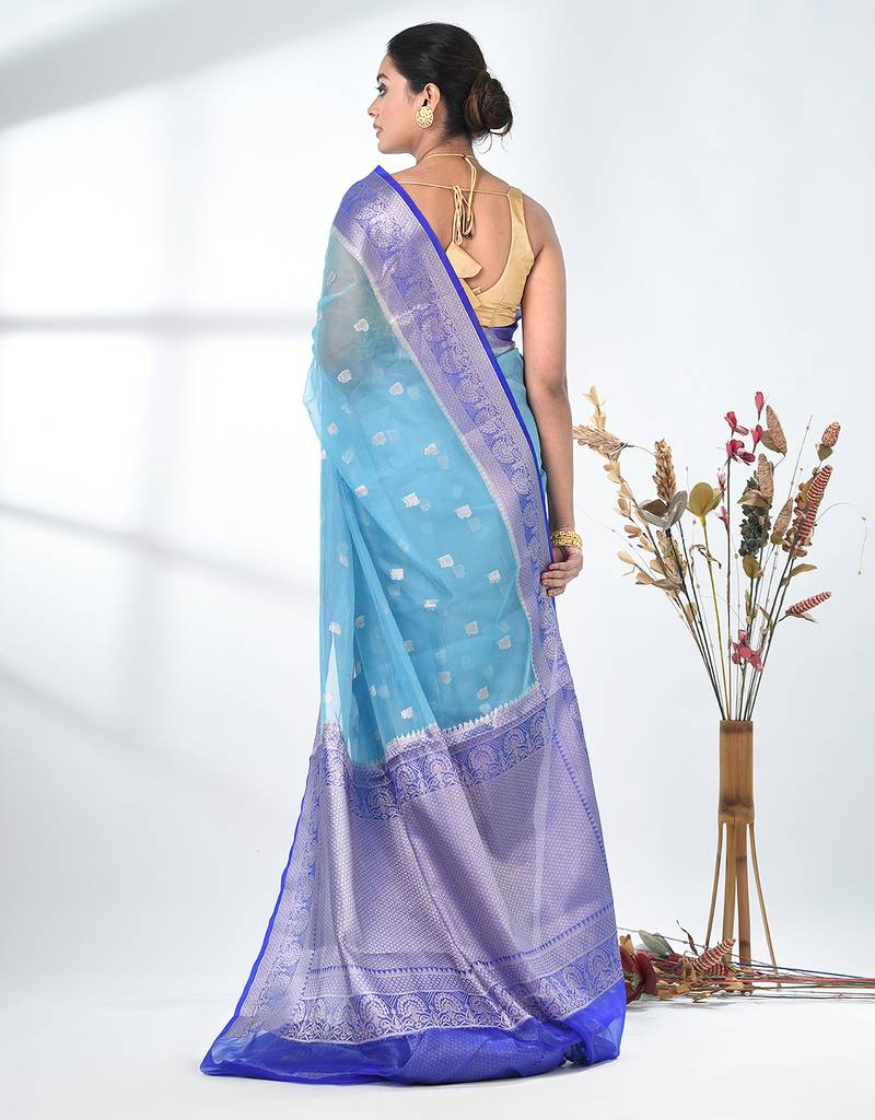 | Product Name | Sky Blue Organza Saree With Floral Motifs And Blue Border | |
