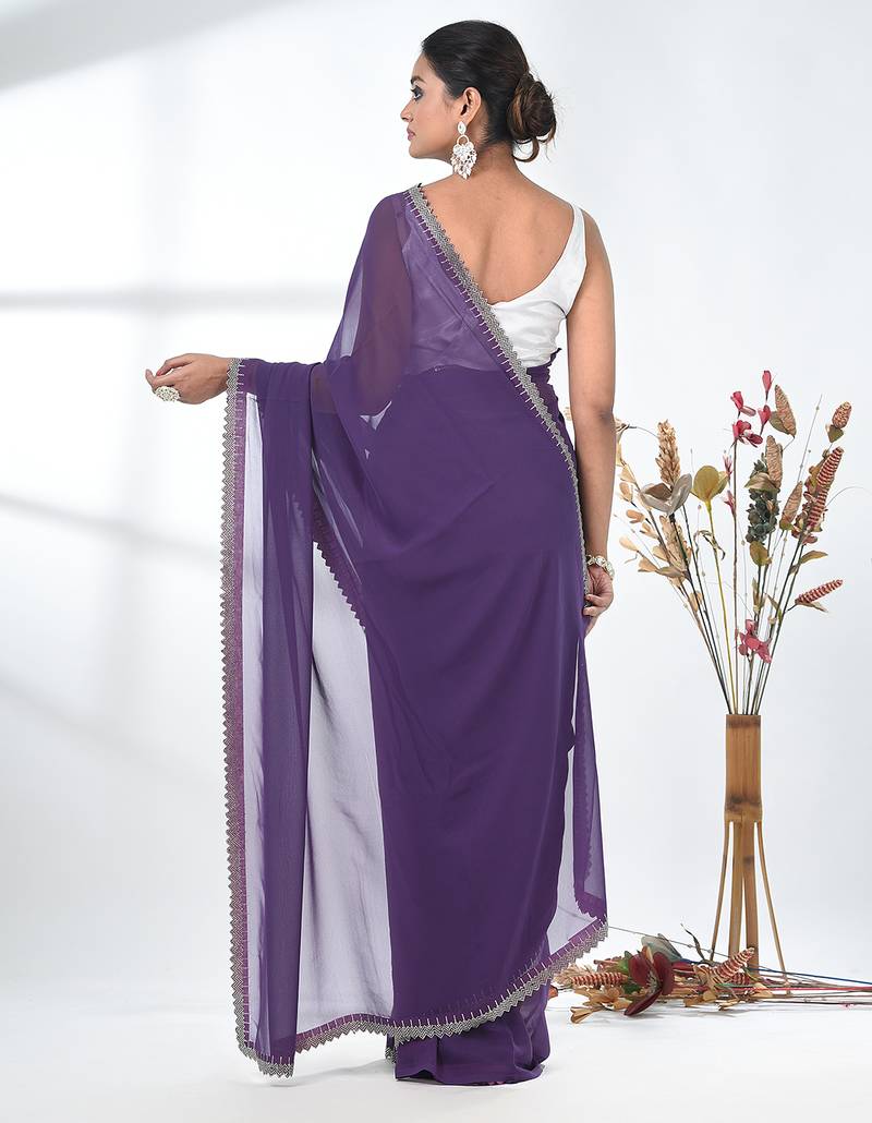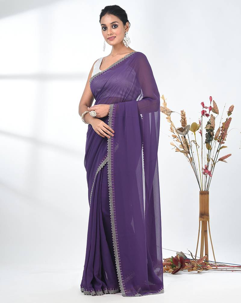 | Product Name | Stylish Violet Chiffon Saree With Stone Work Border | |