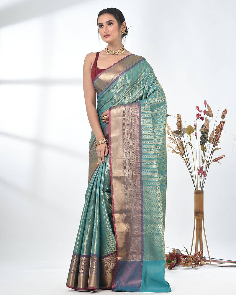 | Product Name | Teal Brocade Saree With Intricate Borders | |