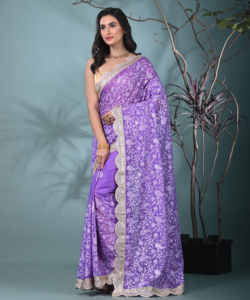 | Product Name | Violet Chanderi Silk Blend Saree With Embroidered Floral Design | |