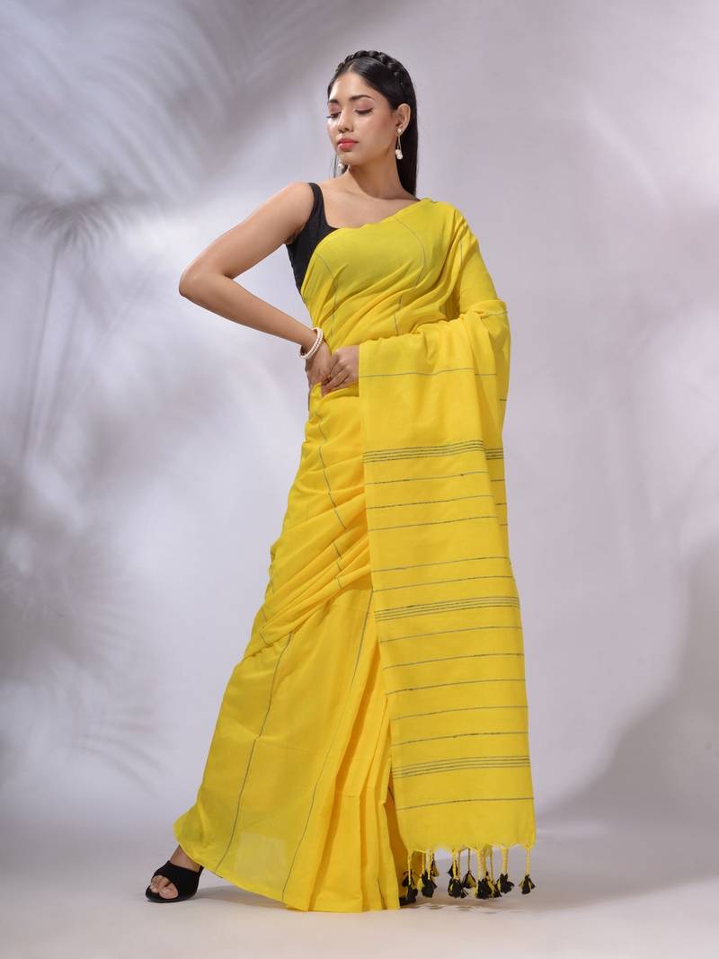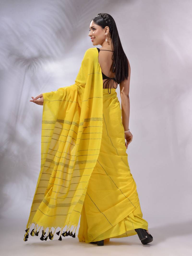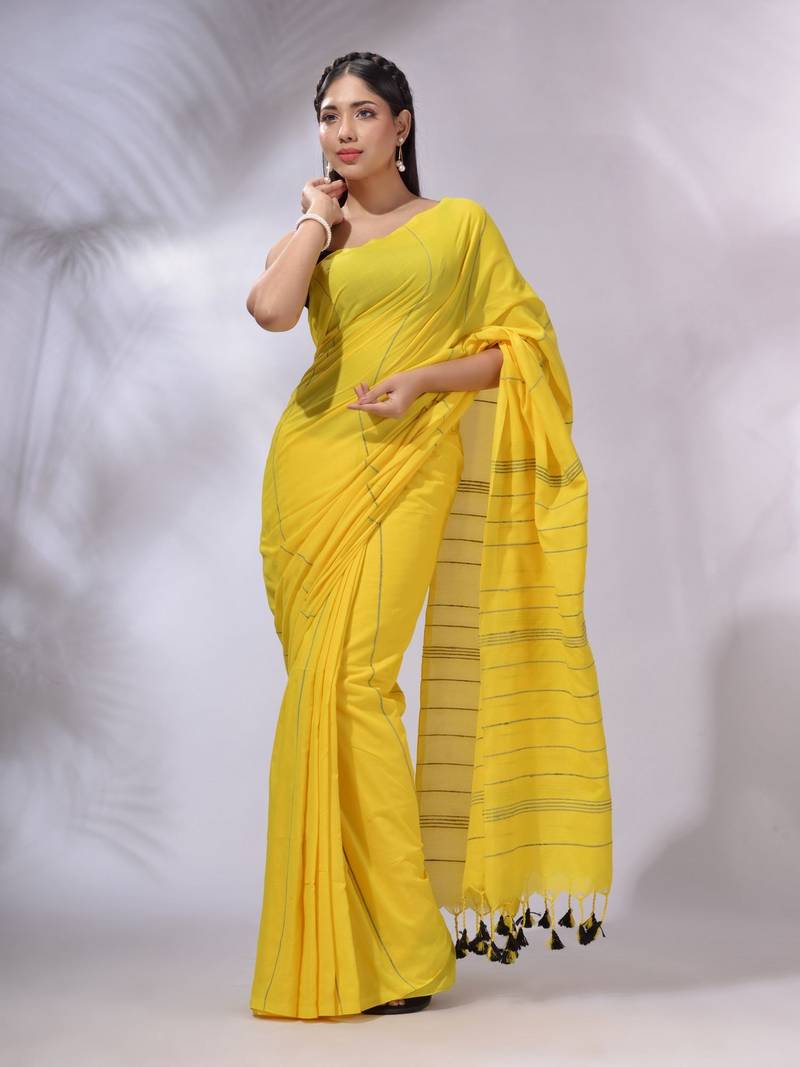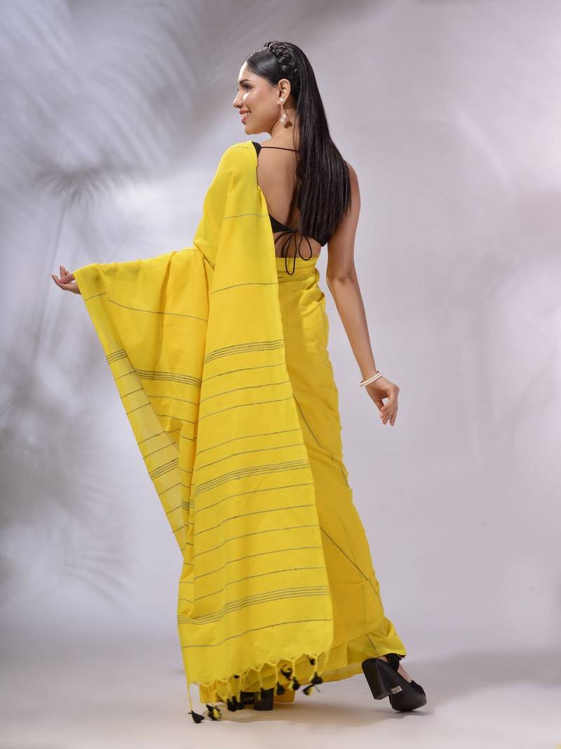 | Product Name | Yellow Cotton Handwoven Saree With Stripe Design | |