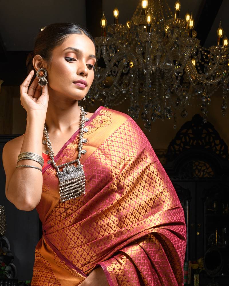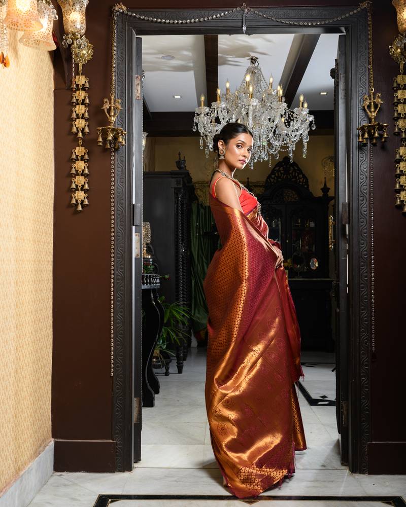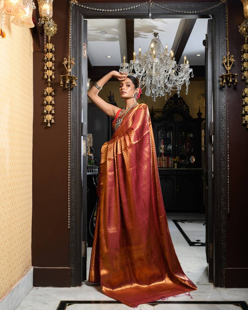 | Product Description | Maroon All Over Golden Zari Woven Brocade Banarasi With Blouse |