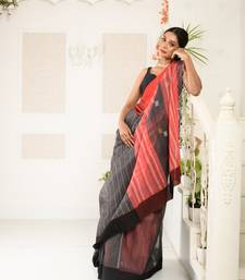 Steel grey and peach woven handloom saree