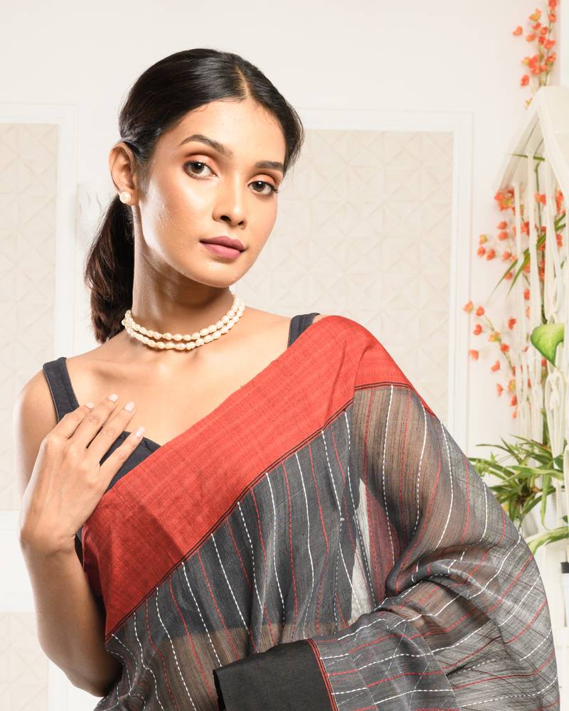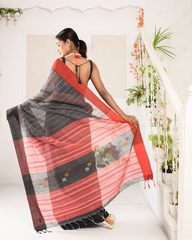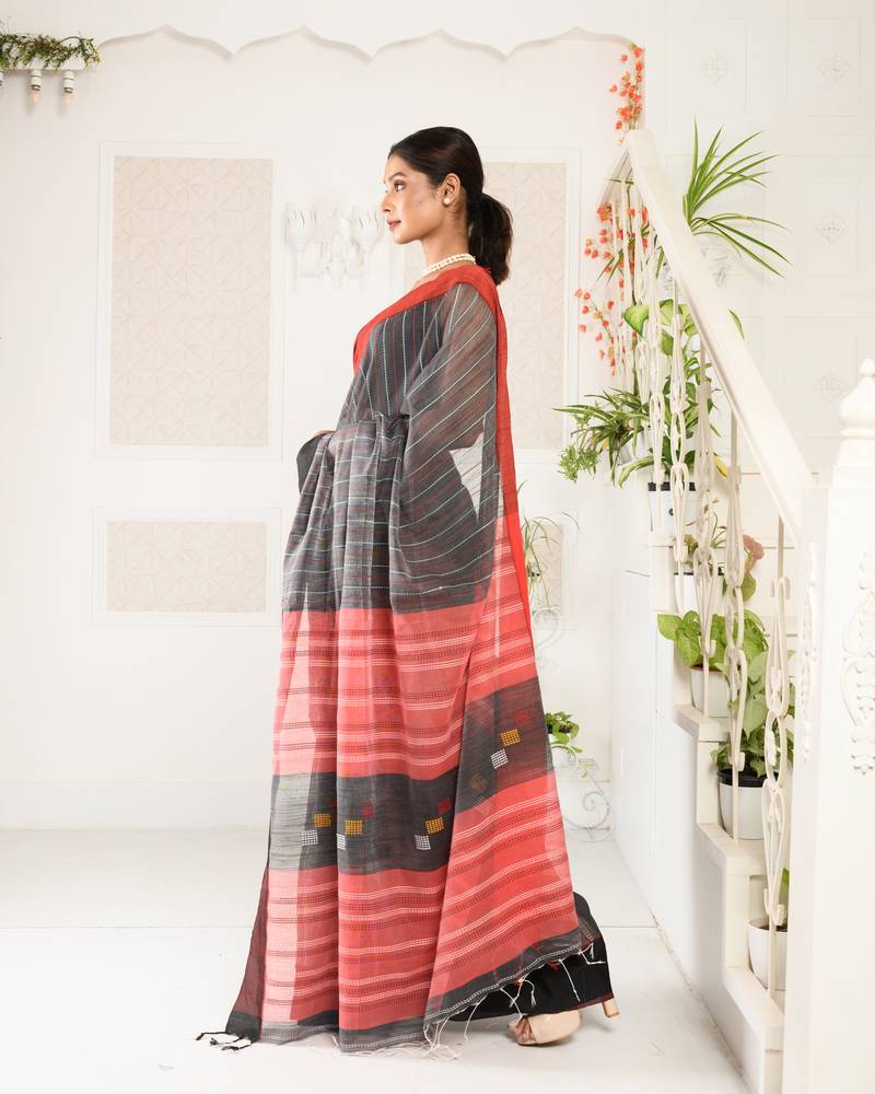 | • | Saree | : | Color- Dark Grey / Fabric- Blended Cotton |