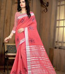 Pitch color linen embroidery work saree