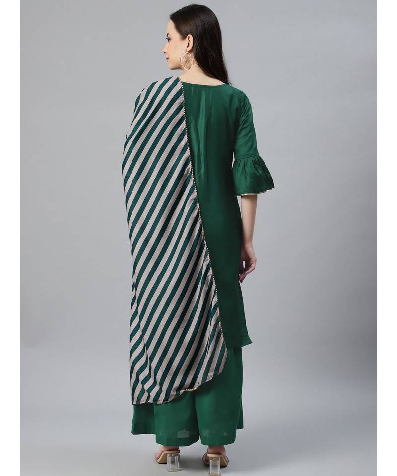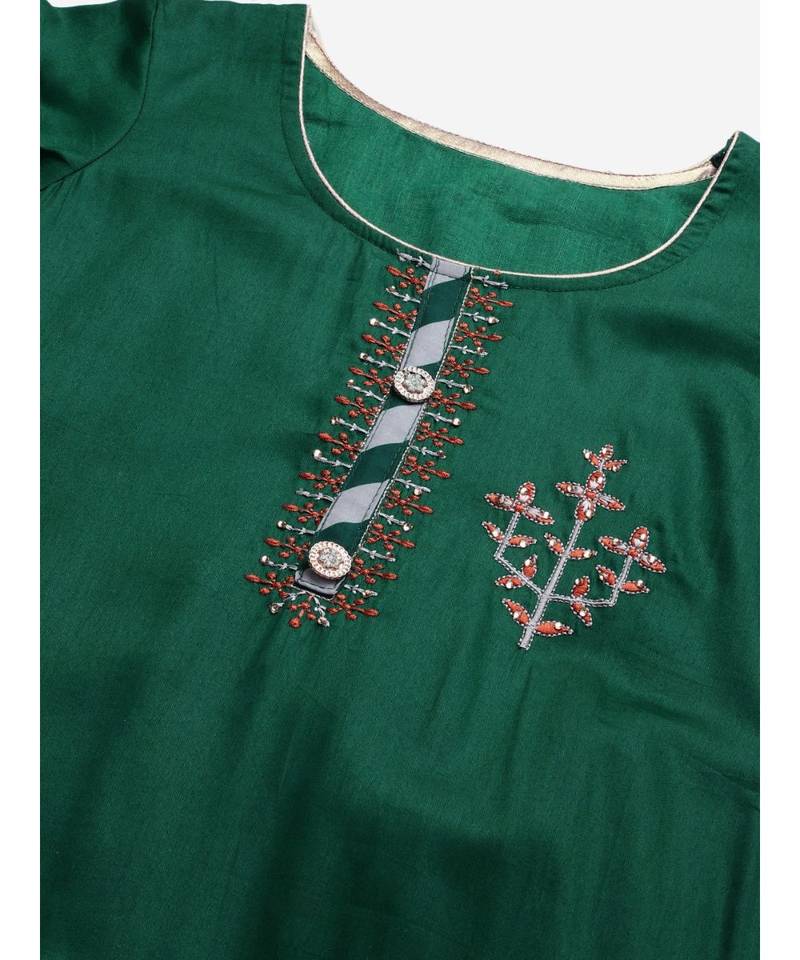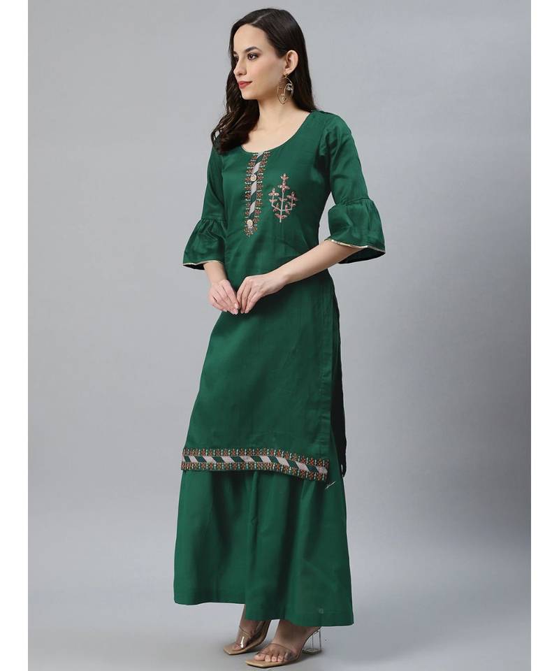 | Product Name | Multicolor Cotton Stitched Kurta Sharara Set With Printed Gotta Pati Dupatta & Bell Sleeves | |