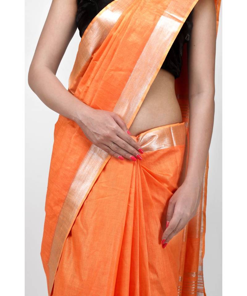 | Product Name | Orange Cotton Saree With Silver Zari And Blouse | |