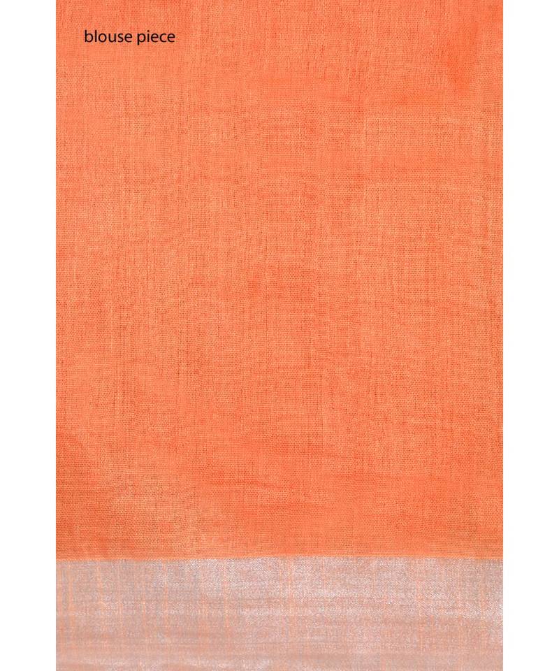 Orange cotton saree with silver zari and blouse