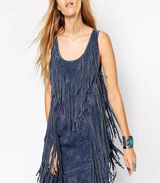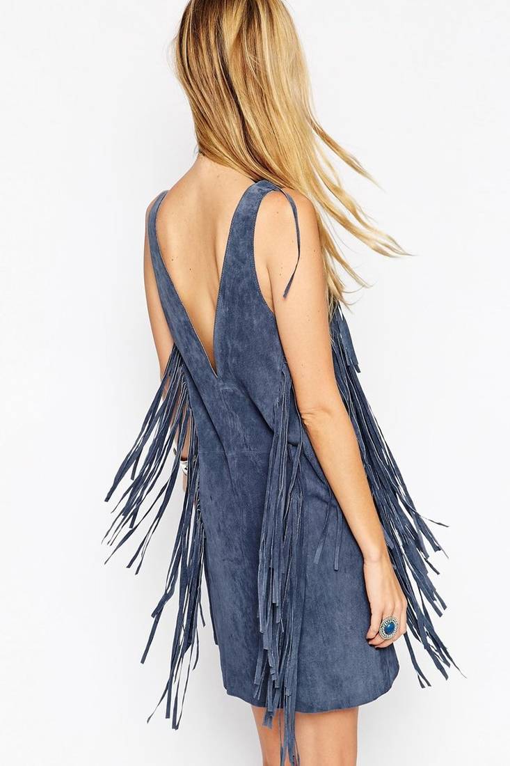 | Product Name | Women Blue Soft Lambskin Suede Leather Dress Fringed Dress | |
