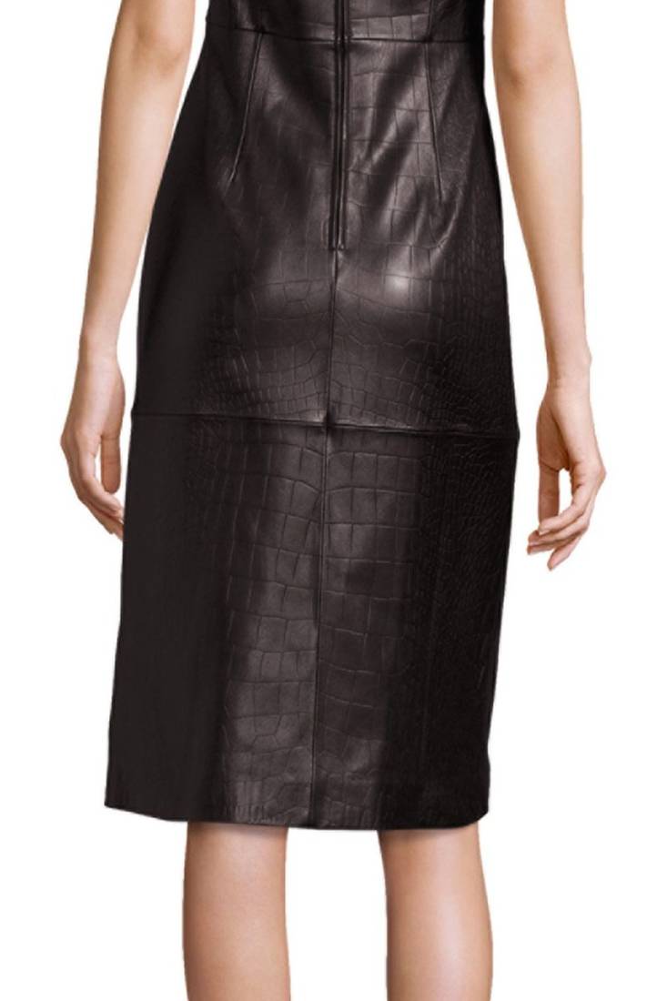 | Product Name | Women’s Black Lambskin Leather Crocodile Textured Real Leather Short Sleeve Midi Dress | |