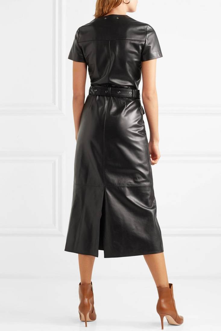 | Product Description | Women’s Genuine Black Lambskin Leather Belted Zip Front Dress Key Features: