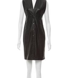 | Product Name | Women’s Genuine Lambskin Leather Sleeveless V Neck Button Front Dress | |