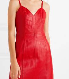 | Product Name | Women’s Genuine Lambskin Red Leather Spaghetti Strap Mini Dress | |