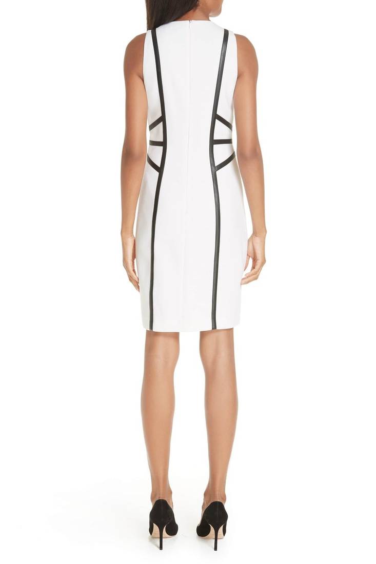 Women’s white lambskin leather dress bold black contrast panels