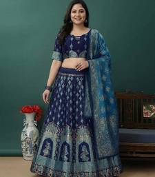 Dark blue jacquard lehenga choli customizable sizes 2xl to 8xl