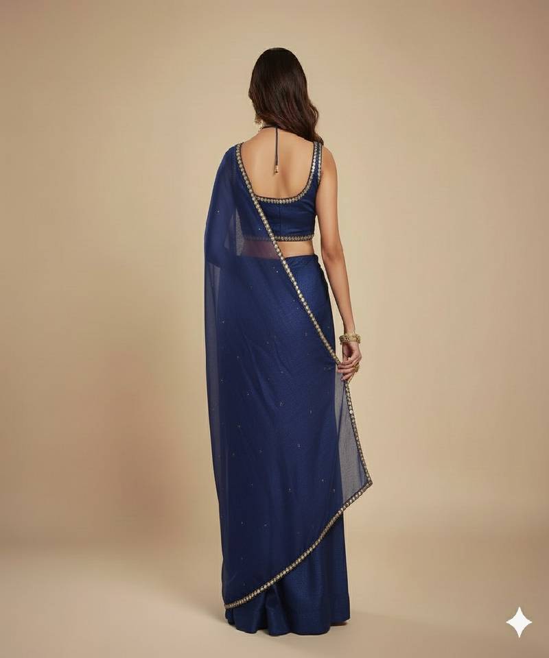 | Product Description | This Blue Lehenga Saree Showcases A Contemporary Drape With A Sleeveless Blouse And Subtle Shimmer Throughout. The Rich Fabric Reflects Light Beautifully, Creating A Luxurious Look. Ideal For Weddings, Parties And Formal Events, This Saree Blends Classic Glamour With Modern Sophistication Effortlessly. |