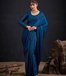 Blue satin embroidered saree