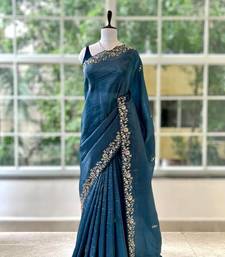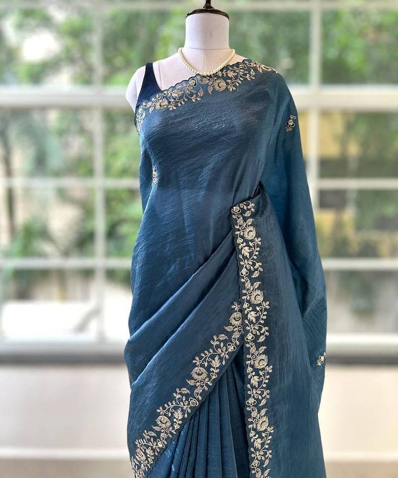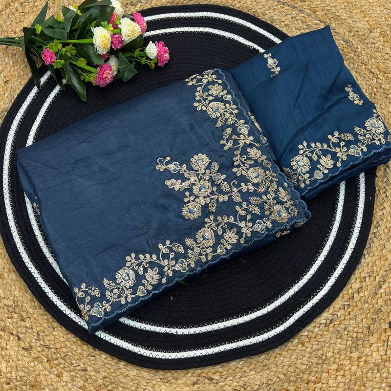 Blue silk blend embroidered saree