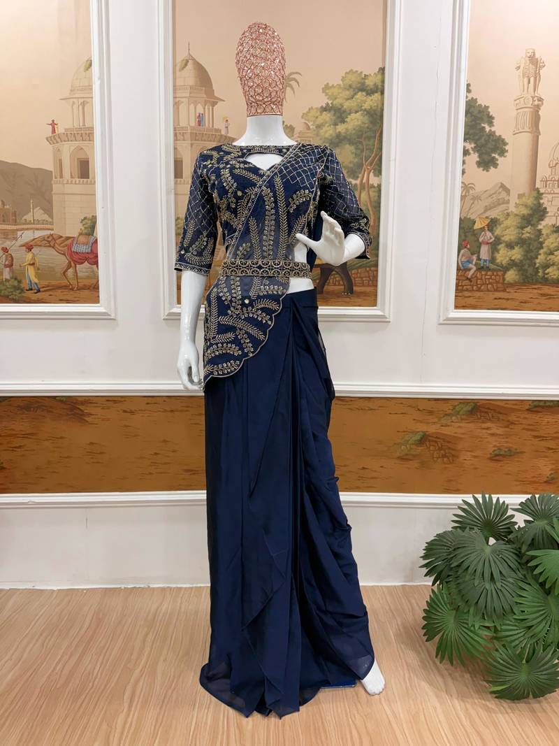 | Product Name | Blue Silk Blend Embroidered Saree | |