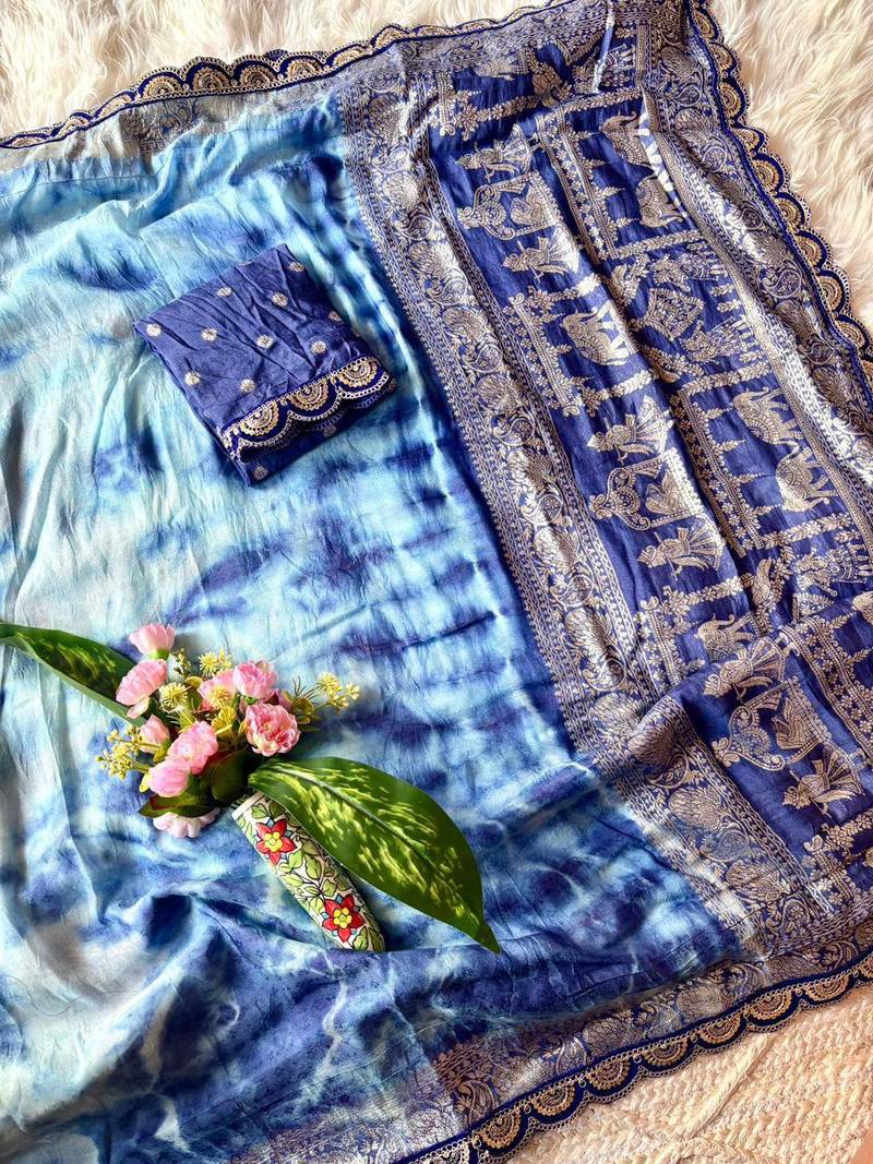| Product Name | Blue Silk Blend Shibori Tie Dye Saree | |