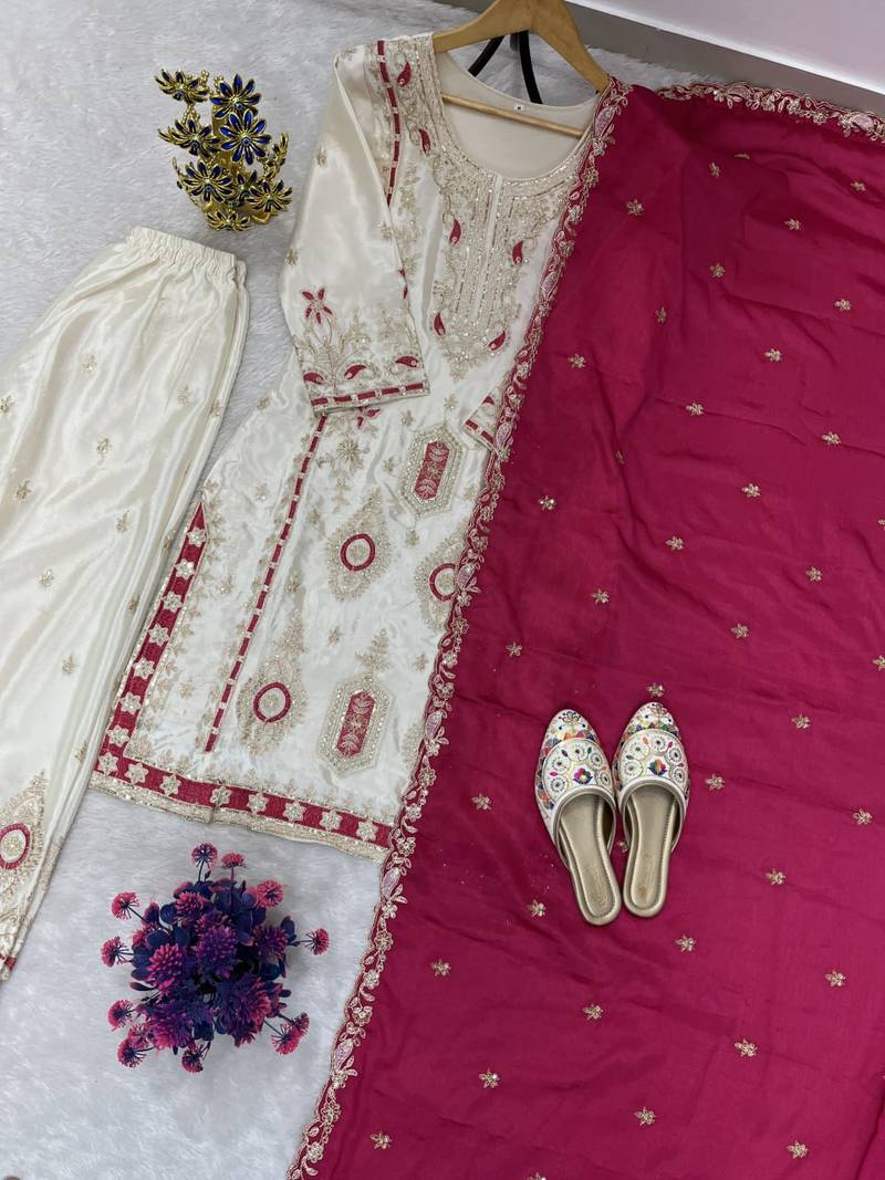 | Product Name | Chinon White And Crimson Salwar Set | |