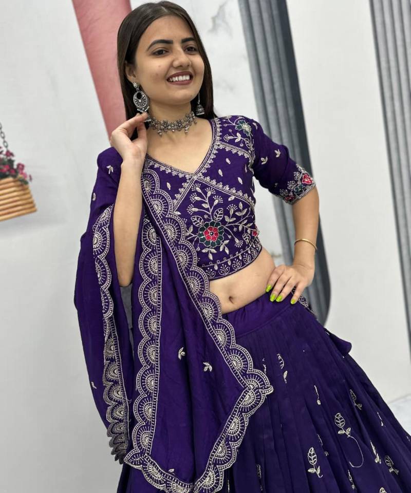 Product Name Dark Purple Embroidered Lehenga Free Size