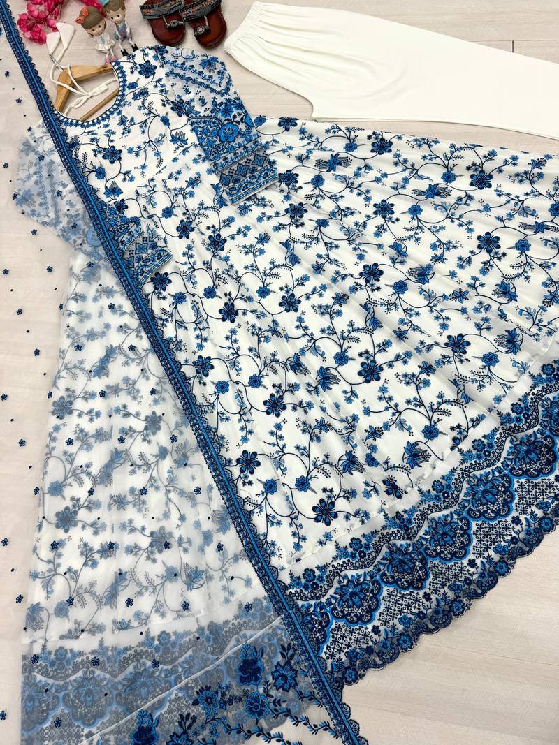 | Product Name | Ethereal Blue And White Floral Print Gown With Embroidered Border | |