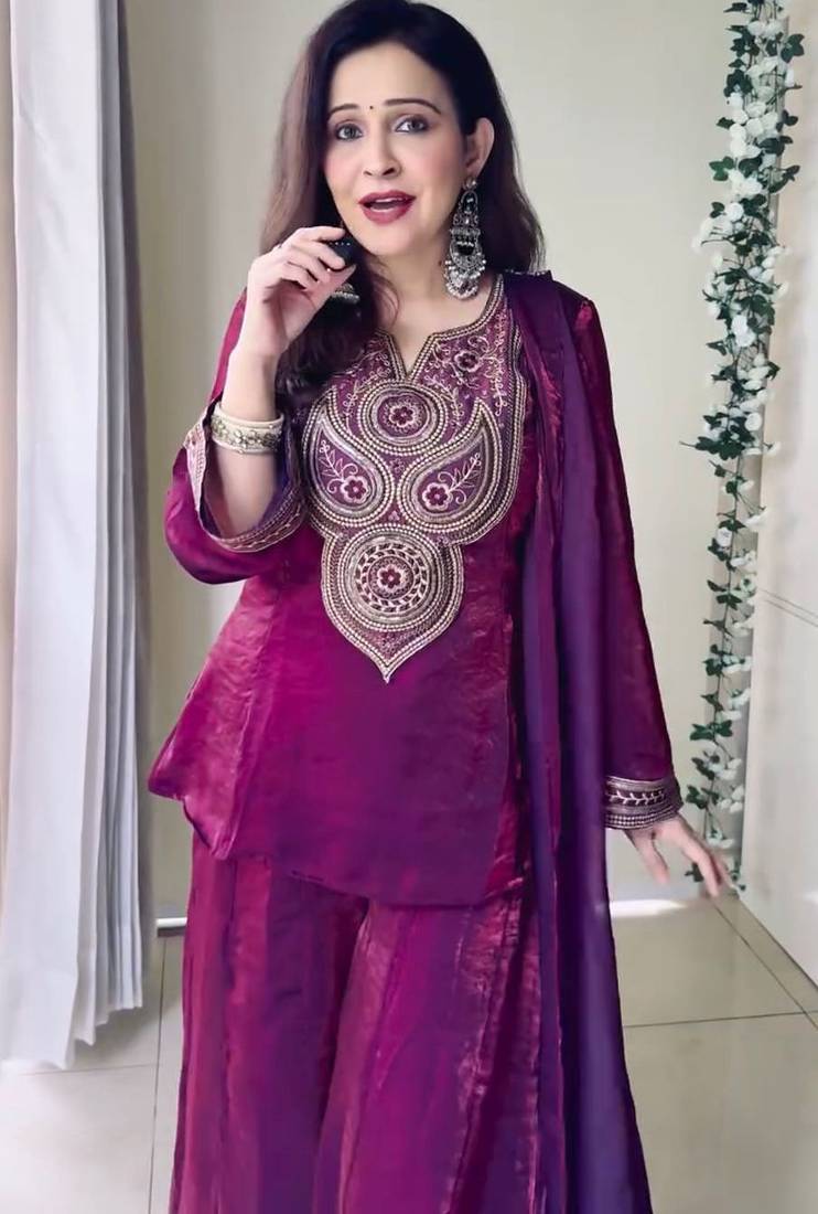 | Product Description | Make A Bold Statement In This Deep Maroon Toned Ethnic Set. The Kurta Is Distinguished By Heavy Antique Gold Embroidery And A Unique Structured Neckline. Crafted From Premium Fabric With A Subtle Sheen, This Outfit Includes A Matching Dupatta And Sleek Trousers, Perfect For Winter Weddings And Grand Celebratory Dinners. |