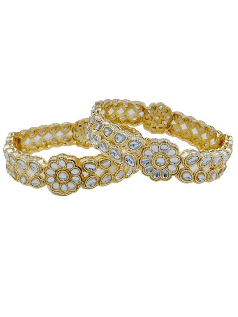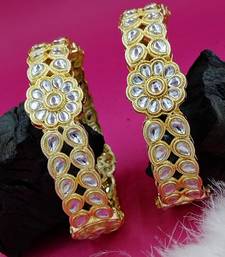 | Product Description | Enhance Your Ethnic Ensemble With These Exquisite Gold Plated Bangles, Featuring A Unique Scalloped Silhouette. Adorned With Precision Cut Kundan Stones And Delicate Beadwork, These Handcrafted Pieces Blend Traditional Artistry With Modern Flair. Perfect For Weddings Or Festive Celebrations, They Offer A Regal Touch To Any Sophisticated Jewelry Collection. |
