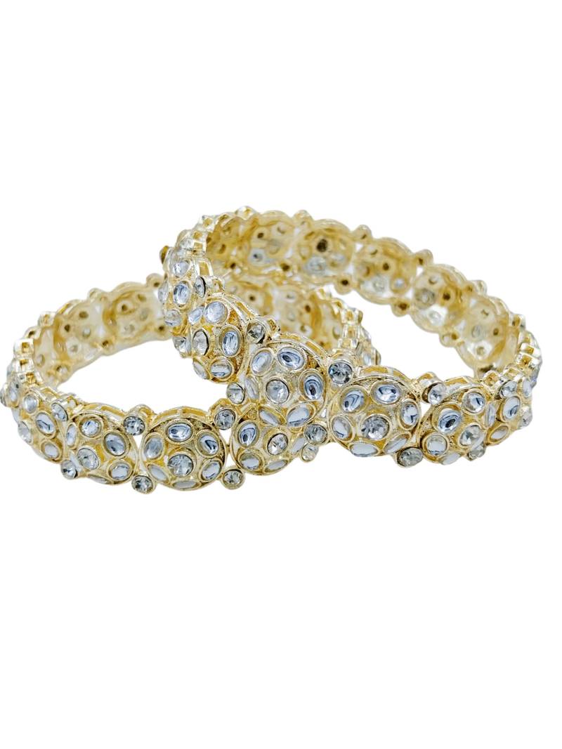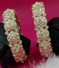 | Product Description | Enhance Your Ethnic Ensemble With These Exquisite Gold Plated Bangles, Featuring A Unique Scalloped Silhouette. Adorned With Precision Cut Kundan Stones And Delicate Beadwork, These Handcrafted Pieces Blend Traditional Artistry With Modern Flair. Perfect For Weddings Or Festive Celebrations, They Offer A Regal Touch To Any Sophisticated Jewelry Collection. |
