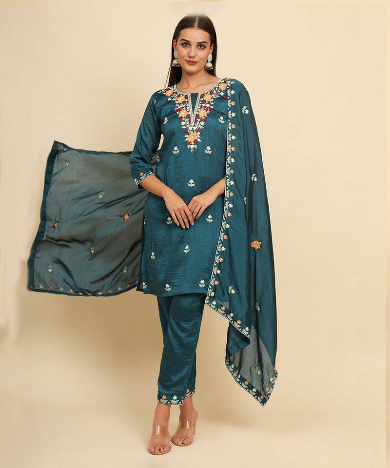 | Product Name | Green Silk Blend Embroidered Kurta With Pant And Dupatta | |