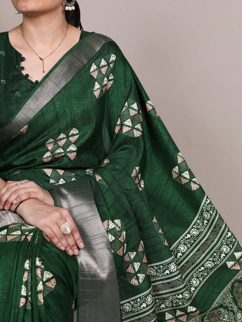 | Product Name | Green Silk Blend Geometric Print Saree | |