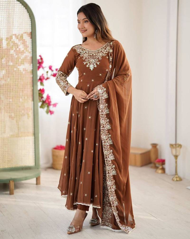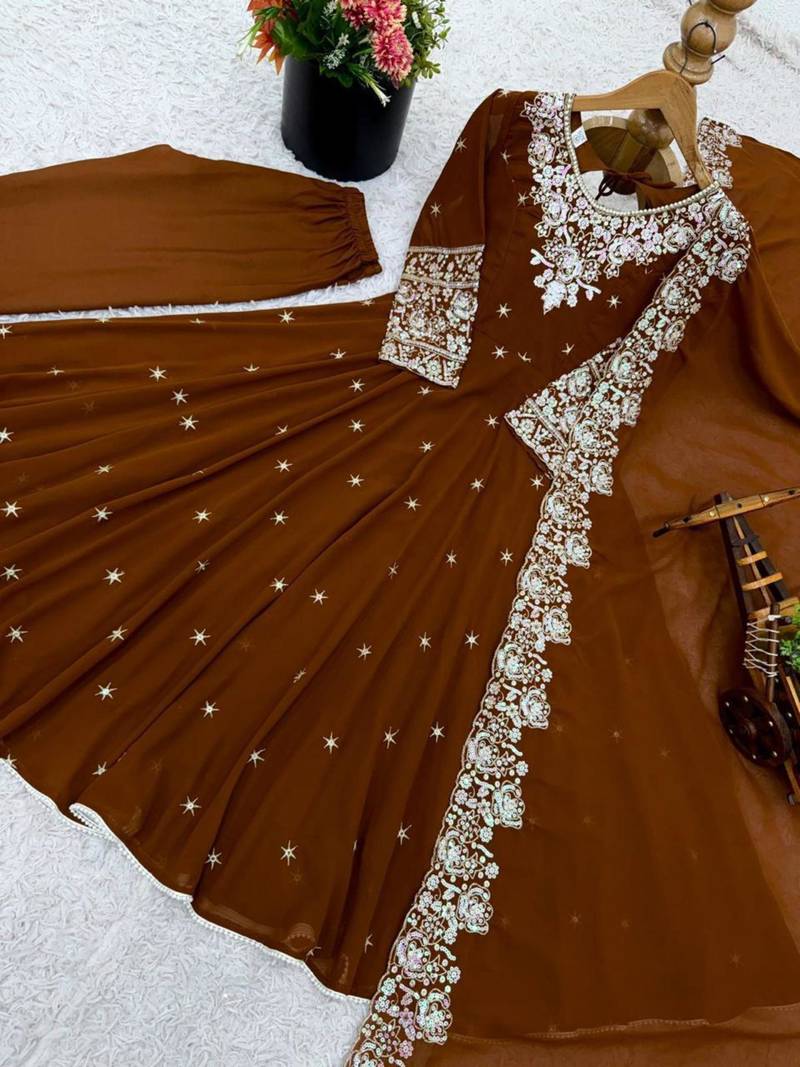 Product Name Rust Brown Georgette Anarkali Kurta Set