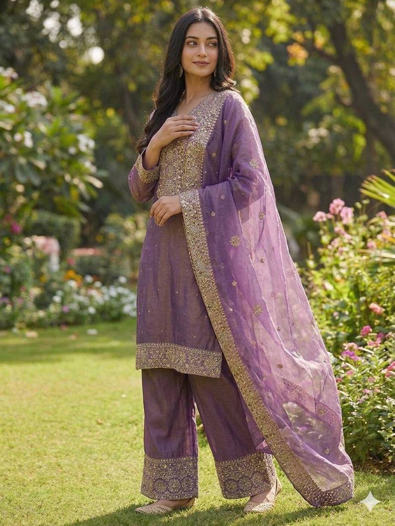 | Product Description | This Lavender Suit Set Combines Soft Tones With Delicate Embroidery And A Sheer Dupatta. Crafted For Elegance And Comfort, It Is Ideal For Daytime Events And Festive Occasions. The Lightweight Fabric And Subtle Detailing Create A Graceful And Modern Ethnic Outfit Suitable For Any Celebration. |