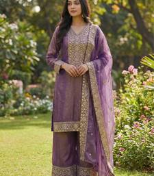 Lavender ethnic suit set stitched
